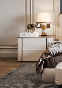 يُعتبر **كمود غرف النوم** من العناصر الأساسية أيضًا. فهو يُستخدم لتخزين الأغراض اليومية بطريقة مرتبة. تأكد من أن التصميم يتماشى مع باقي الأثاث في الغرفة.