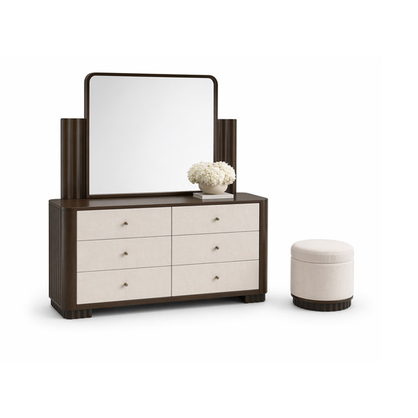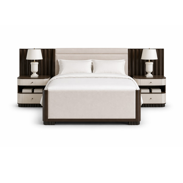 Bed and Dresser and 2 Nightstand with Buff and Bunket